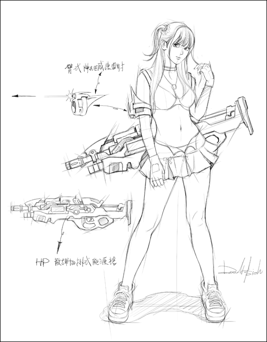 攜帶武器:HP光電 加掛散彈型能源槍,臂掛式神經感應雷射
